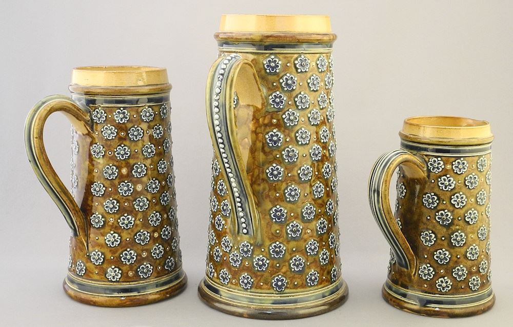 LOT 98 3 Royal Doulton Lambeth Floral Embossed Graduated Pitchers. Estimate: $150 - $200 Auction Date: Tuesday, June 25 2024 at 4:00 PM