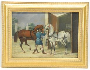 LOT 91 Pair of Oil on Board signed Th. Strassberger Verso, 7 x 10 1/4", "Equestrian Subjects". Estimate: $300 - $600 Sold For: $325 Auction Date: Tuesday, February 25 2025 at 4:00 PM