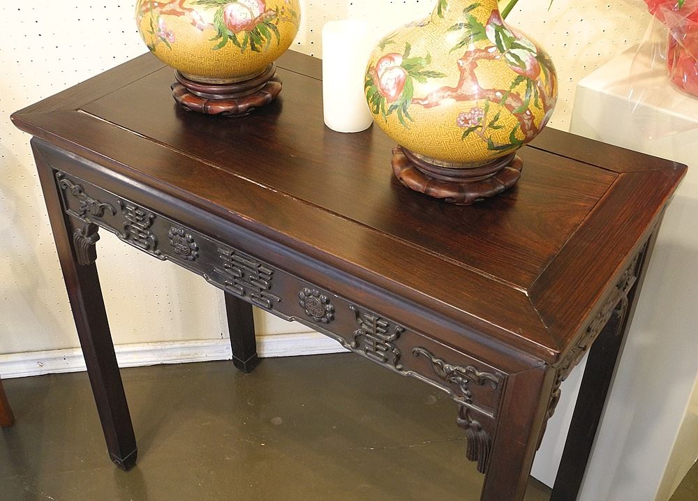 LOT 198 Chinese Rosewood High Table, 34 1/2" x 35 1/2" x 17 1/2". Estimate: $800 - $1,200 Auction Date: Tuesday, February 25 2025 at 4:00 PM