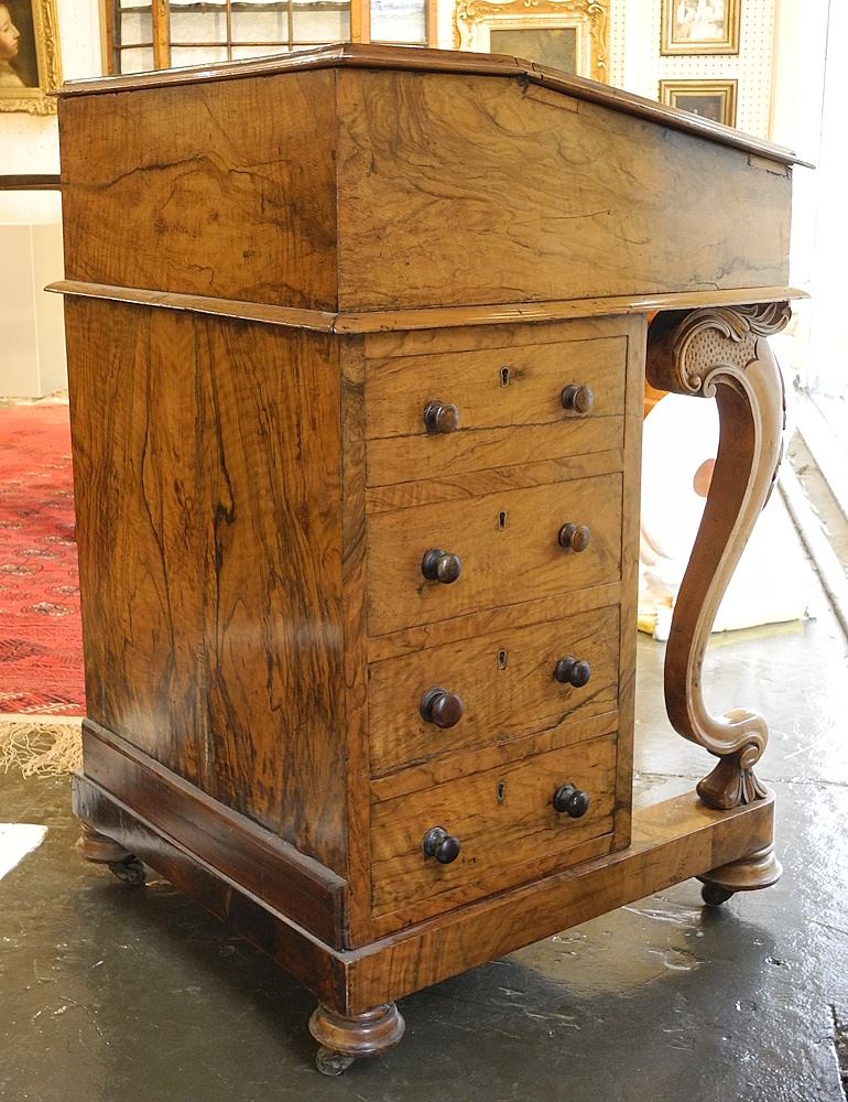 Mid 19th C. Burl Walnut Davenport Desk, 34"h.