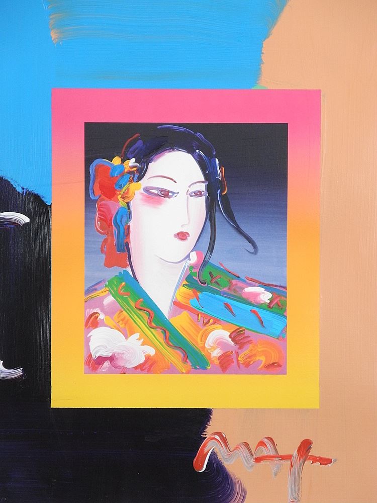 Mixed Media on Paper signed (Peter) Max, 18 x 14", "Asia on Blends", Unique Variation.