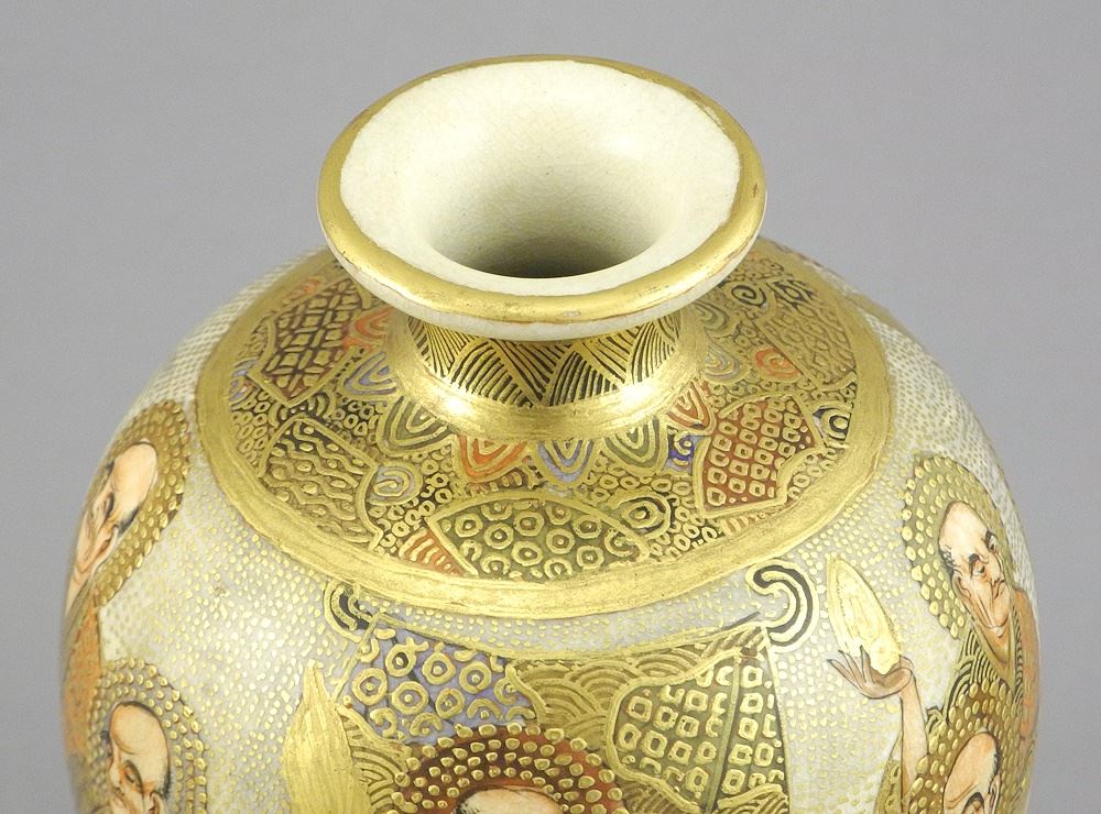 LOT 136 Meiji Satsuma Vase, "The 16 Arhat", 4 3/4". Estimate: $200 - $400 Sold For: $225 Auction Date: Tuesday, February 25 2025 at 4:00 PM