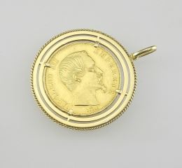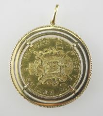 1859 Empire Francais Gold Coin in Gold Frame, TW 24.39g.