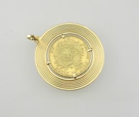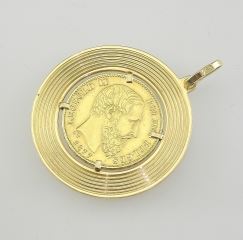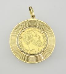 1877 Leopold II Belgian 20 FR. Gold Coin in Gold Frame, TW 12.2g.