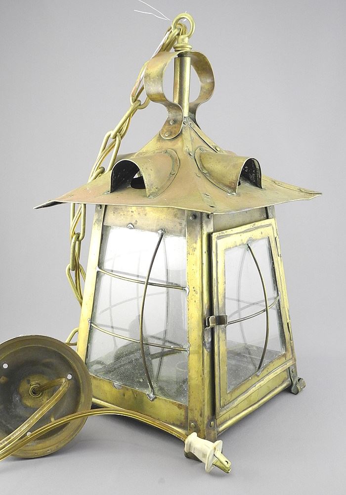 LOT 183 Arts & Crafts Brass Porch Light, 15"h. Estimate: $200 - $300 Sold For: $150 Auction Date: Tuesday, February 25 2025 at 4:00 PM