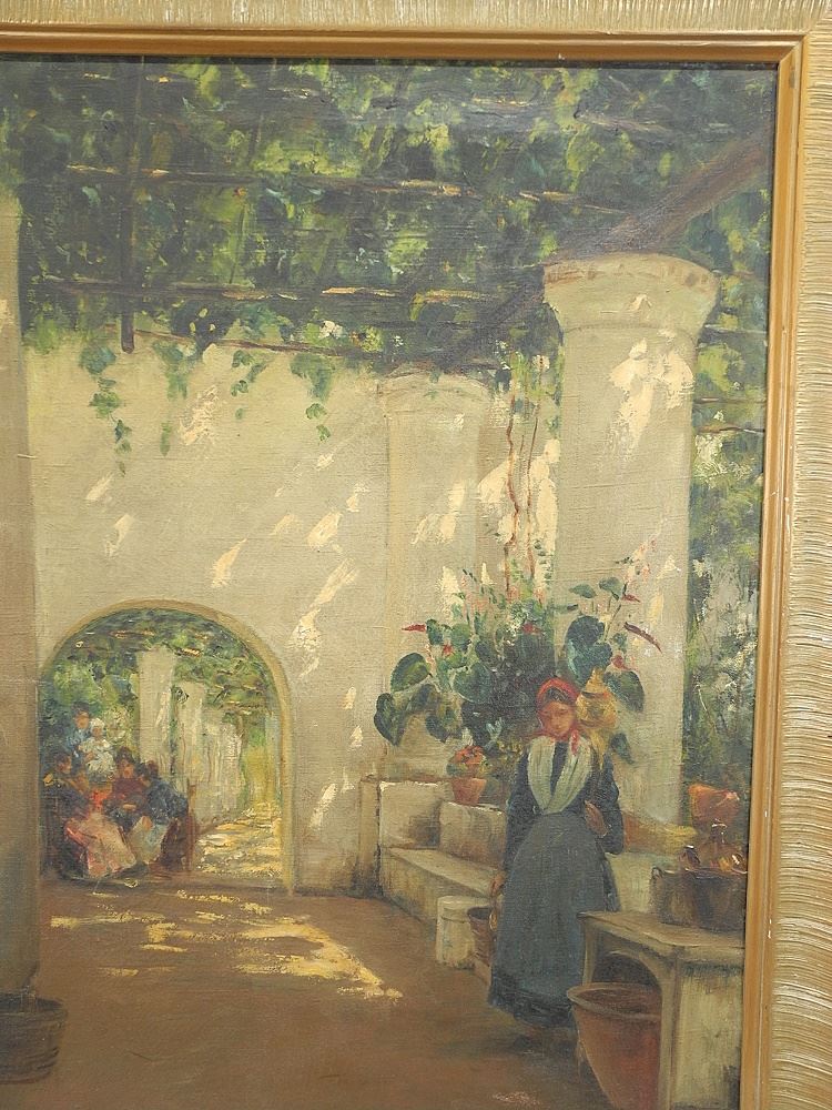 LOT 108 Oil on Canvas signed R. (Richard) Lipps, 30 x 22", "Sunlit Atrium with Gossipers". Estimate: $300 - $500 Auction Date: Tuesday, February 25 2025 at 4:00 PM