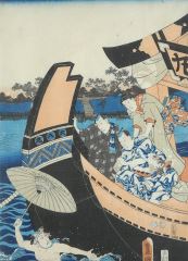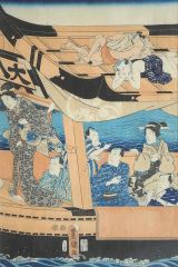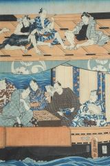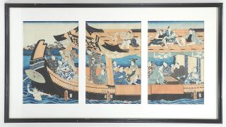 LOT 107 Japanese Woodblock Triptych by Utagawa Kunisada, 14 1/4" x 31", "Beneath the Fireworks..." Estimate: $300 - $400 Sold For: $425 Auction Date: Tuesday, February 25 2025 at 4:00 PM