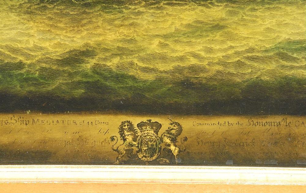 LOT 193 Glass Painted Print by James Pollard , 20 3/8" x 25 1/2", "His Majesty's Ship Mediator". Estimate: $150 - $300 Sold For: $150 Auction Date: Tuesday, February 25 2025 at 4:00 PM