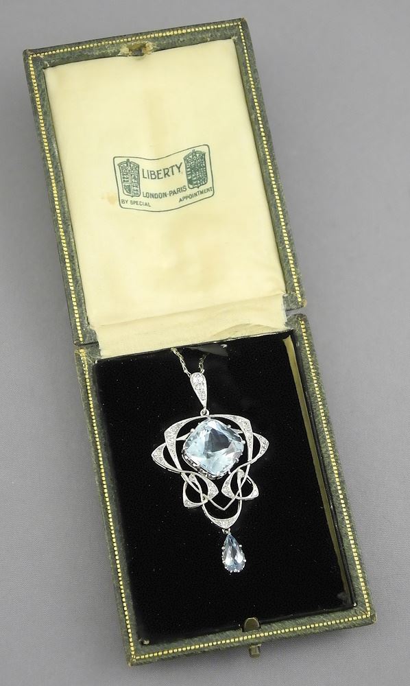 LOT 36 Archibald Knox Antique Platinum Diamond & Aquamarine Pendant with Appraisal. Estimate: $3,000 - $6,000 Sold For: $6,000 Auction Date: Tuesday, February 25 2025 at 4:00 PM