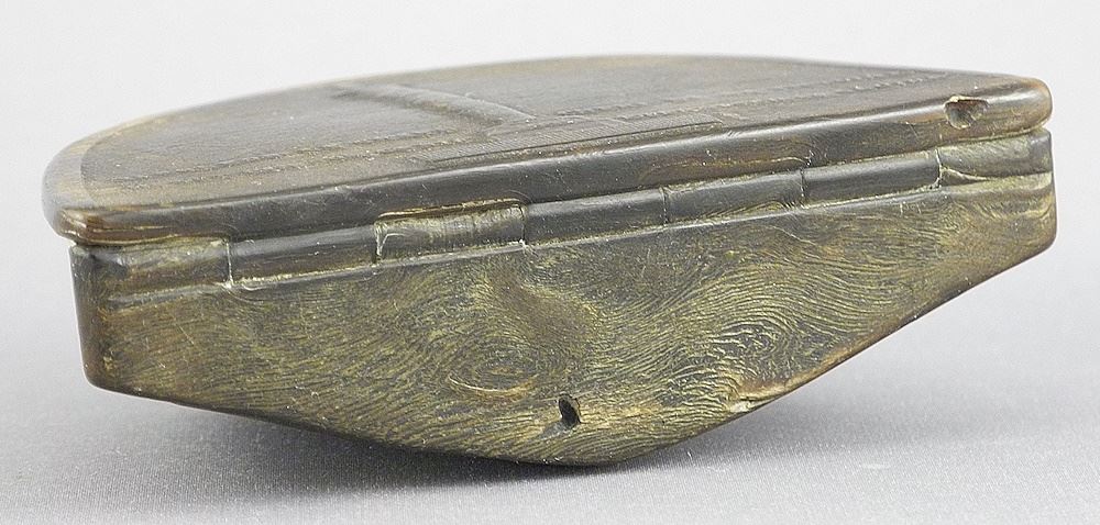 LOT 68 Napoleonic Bovine Horn Snuff Box, 2 x 3 1/4 x 1". Estimate: $150 - $300 Sold For: $160 Auction Date: Tuesday, February 25 2025 at 4:00 PM