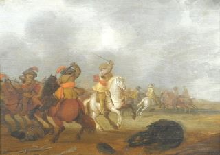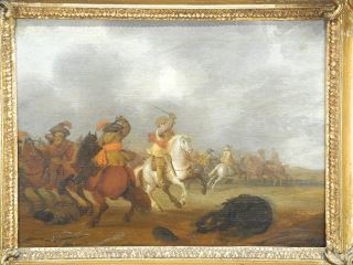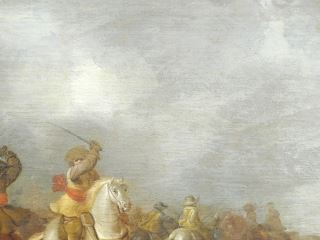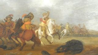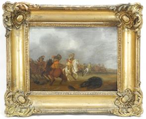 European School 18th C., 11 3/8" x 15 1/2", "Cavaliers on Horseback".