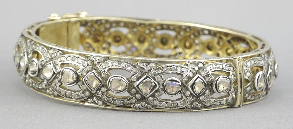 LOT 42 Antique 14K (tested) Gold Sterling & 12K European Cut Diamond Bracelet, 37.6g, 2 3/4" Diam. Estimate: $4,000 - $6,000 Auction Date: Tuesday, February 25 2025 at 4:00 PM
