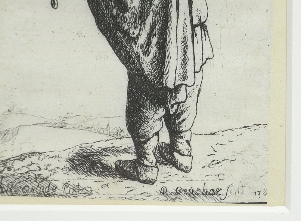 Etching by Deuchar After Van Ostade, 3 x 2 3/8", "Musician" (cropped, laid down).