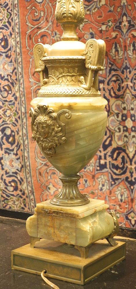 LOT 116 Pair of Louis XVI-Style Ormolu & Onyx Urns Mounted as Lamps, 14 1/2"h Estimate: $250 - $400 Sold For: $325 Auction Date: Tuesday, February 25 2025 at 4:00 PM