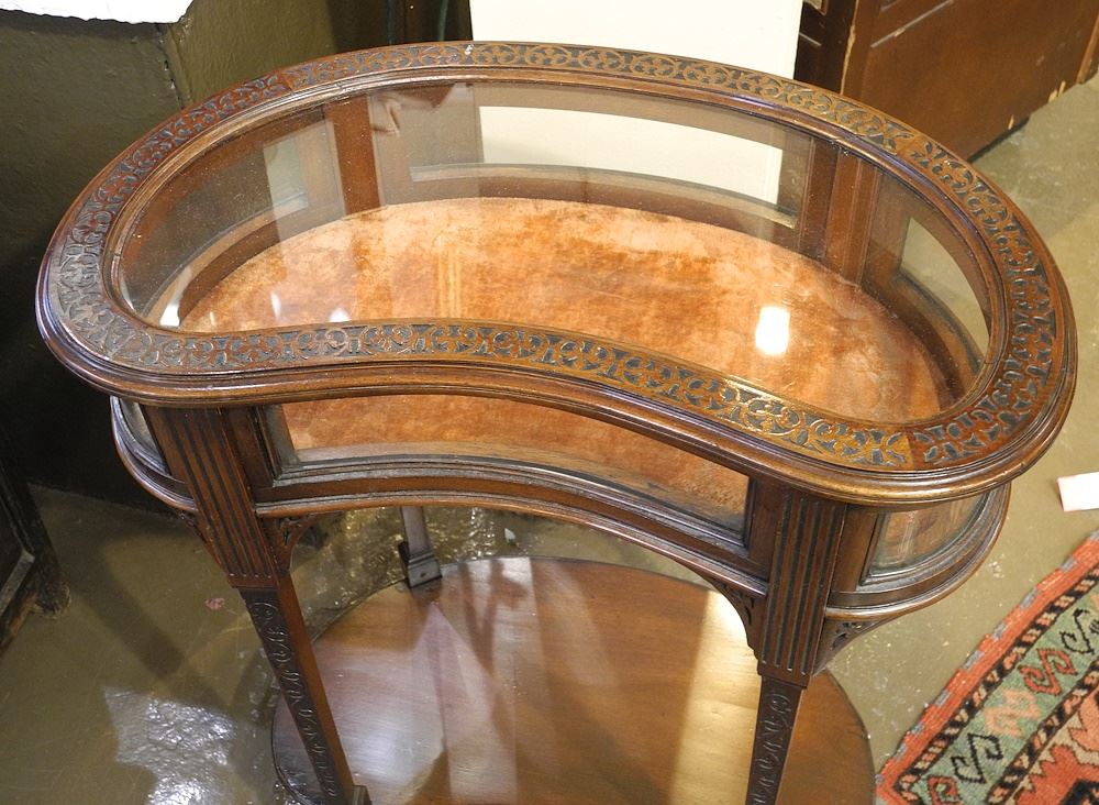Kidney Shaped Mahogany Specimen Table with Blind Fretwork, 30"h.
