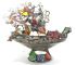 Royal Dux Polar Bear (12"L) with 3 Glass Animal Ornaments.
