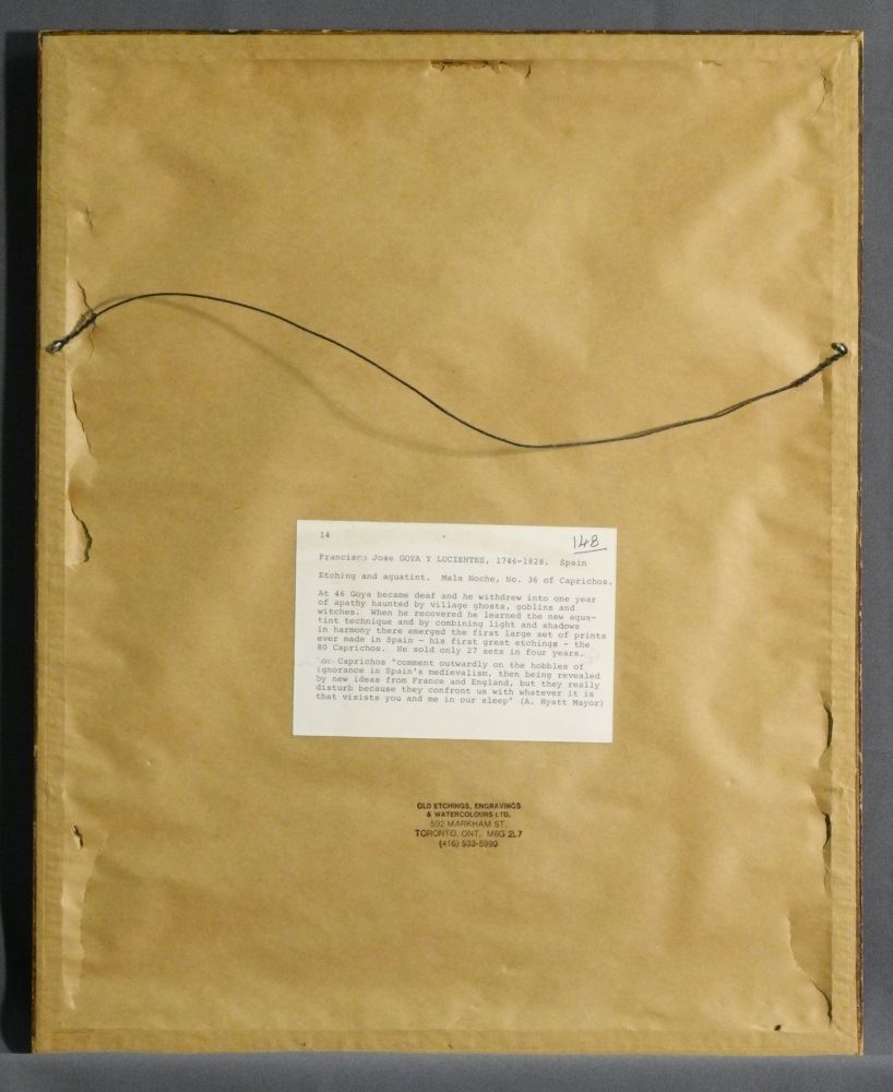 Etching att. to Francisco Goya, "Mala Noche" (#36), 9" x 6 1/8".