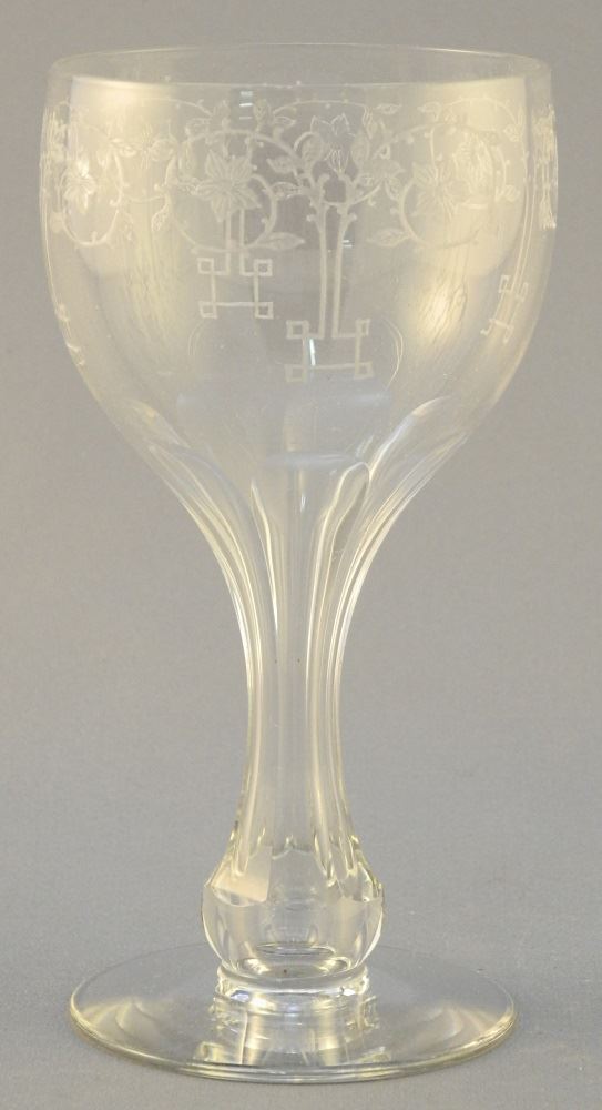 Set of 6 Antique Cut & Etched Wine Glasses, 5 1/4" high.