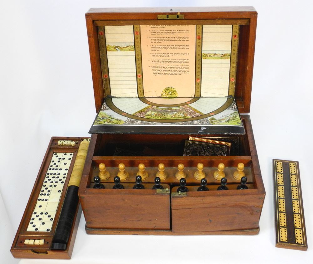 LOT 140 19th Century Mahogany Gaming Compendium, 13" closed width. Estimate: $300 - $500 Sold For: $750 Auction Date: Tuesday, August 31 2021 at 6:00 PM