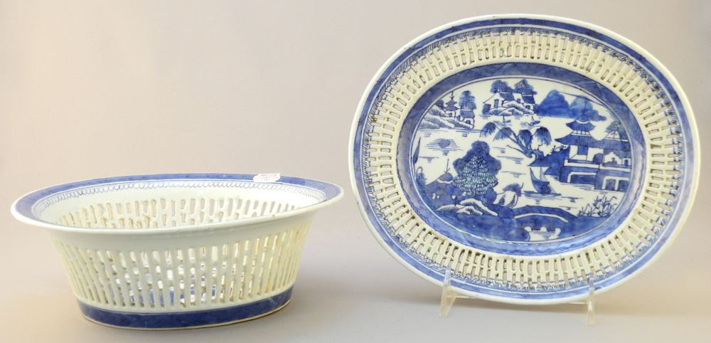 LOT 260 Canton Pierced Oval Fruit Bowl with Coordinating Pierced Plate, small 8 3/4" wide. Estimate: $100 - $200 Sold For: $200 Auction Date: Tuesday, August 31 2021 at 6:00 PM