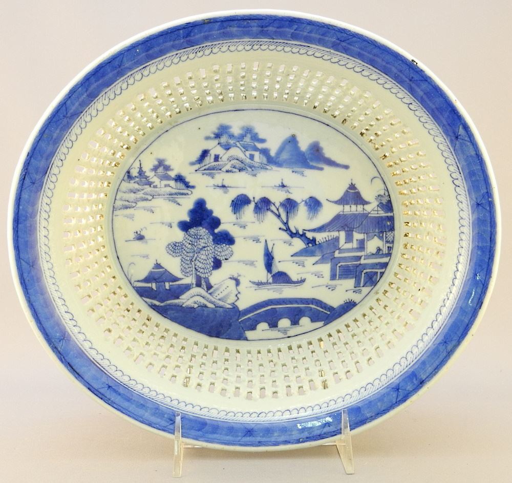 LOT 258 Canton Pierced Oval Fruit Bowl with Coordinating Pierced Plate, large 10 3/4" wide. Estimate: $200 - $300 Sold For: $240 Auction Date: Tuesday, August 31 2021 at 6:00 PM
