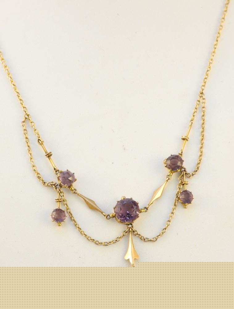 Edwardian Amethyst Lavalier marked HJC, (likely 9K, mark obliterated)