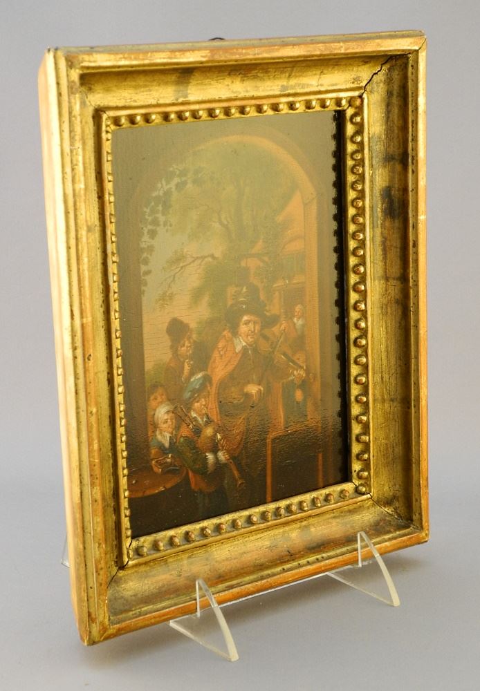 LOT 19 Oil on Pine Panel unsigned, 6 3/4" x 4 7/8", "Itinerant Musicians". Estimate: $100 - $200 Auction Date: Tuesday, August 31 2021 at 6:00 PM