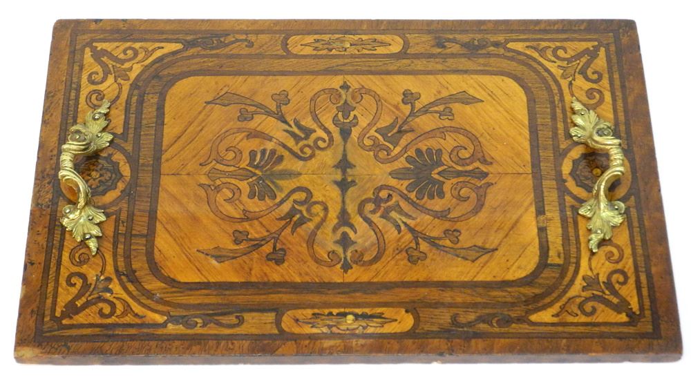 Antique Marquetry 2 Handled Tray, 10 1/4" x 16".