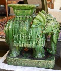 Pair of Chinese Green Glazed Pottery Elephants, 1 restored, 20 1/4" high.