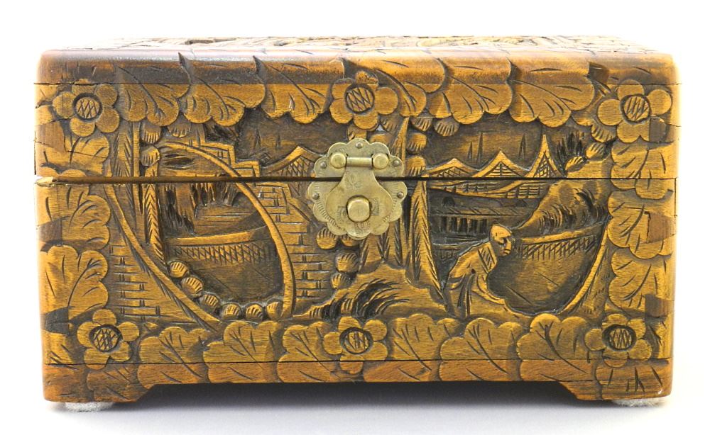 LOT 55 Camphor Wood Box, Bottom signed, 9 7/8" wide. Estimate: $60 - $100 Sold For: $50 Auction Date: Tuesday, August 31 2021 at 6:00 PM