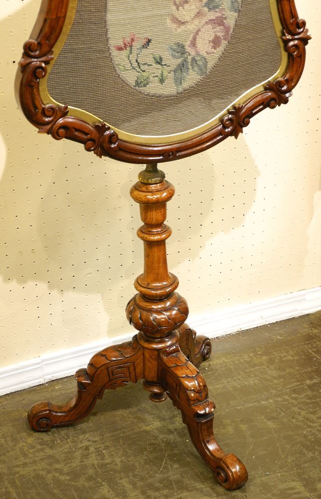 LOT 49 Victorian Mahogany Pole Screen with Needle Pointed Shield, 55 1/2" high. Estimate: $60 - $80 Sold For: $80 Auction Date: Tuesday, February 01 2022 at 6:00 PM