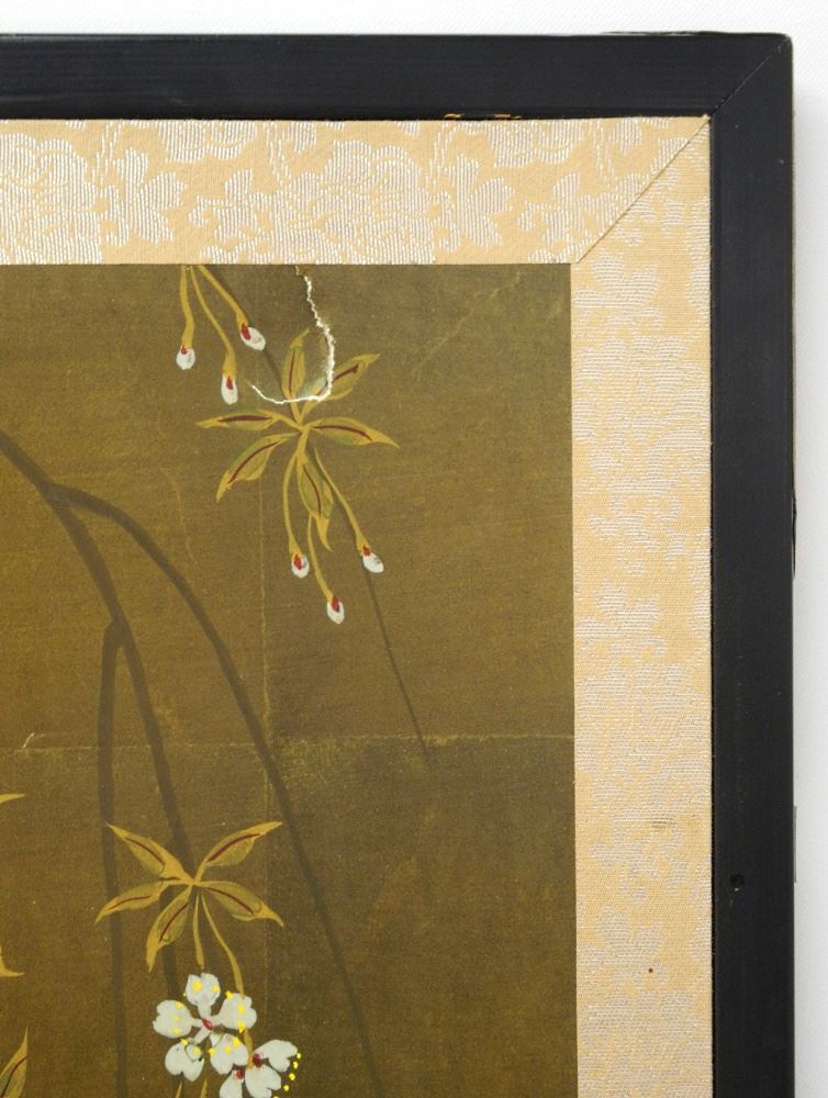 Japanese Bifold Table Screen, GUMPS Label, Holes Noted, 36" High.