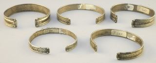 LOT 191 Five Sino-Tibetan Silver Alloy Cuff Bracelets inset with Turquoise & Coral, 1 missing Estimate: $150 - $300 Sold For: $120 Auction Date: Tuesday, April 12 2022 at 6:00 PM