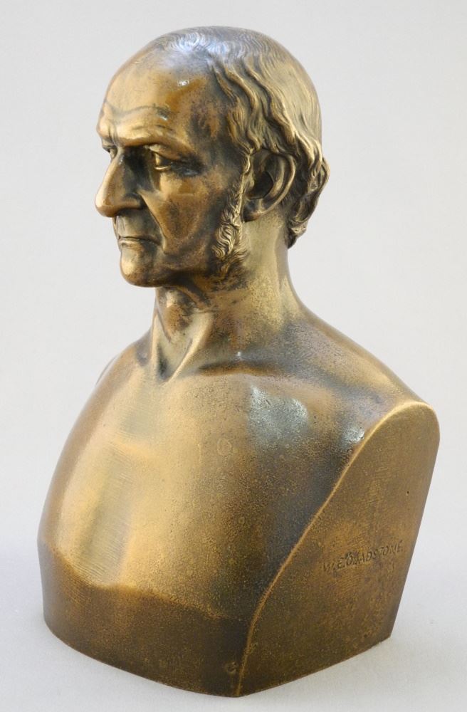 Bronze Bust of Gladstone Signed T. (Thomas) Woolner 1882, 8 7/8" High.