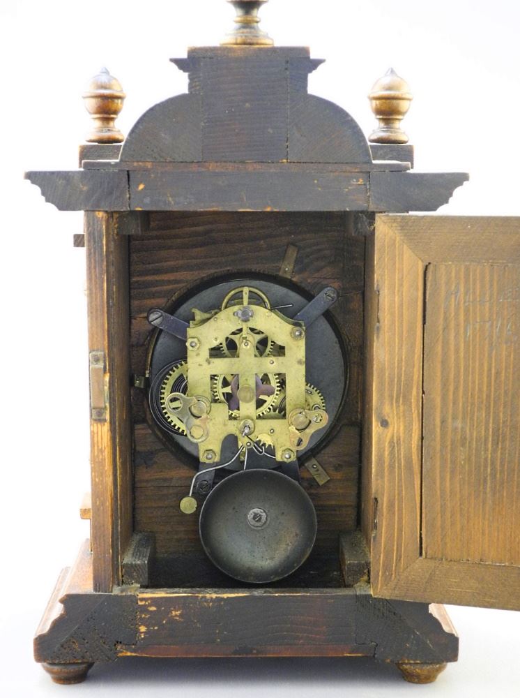 LOT 93 German Walnut Mantle Clock, 14 1/4" High. Estimate: $80 - $100 Sold For: $50 Auction Date: Tuesday, April 12 2022 at 6:00 PM