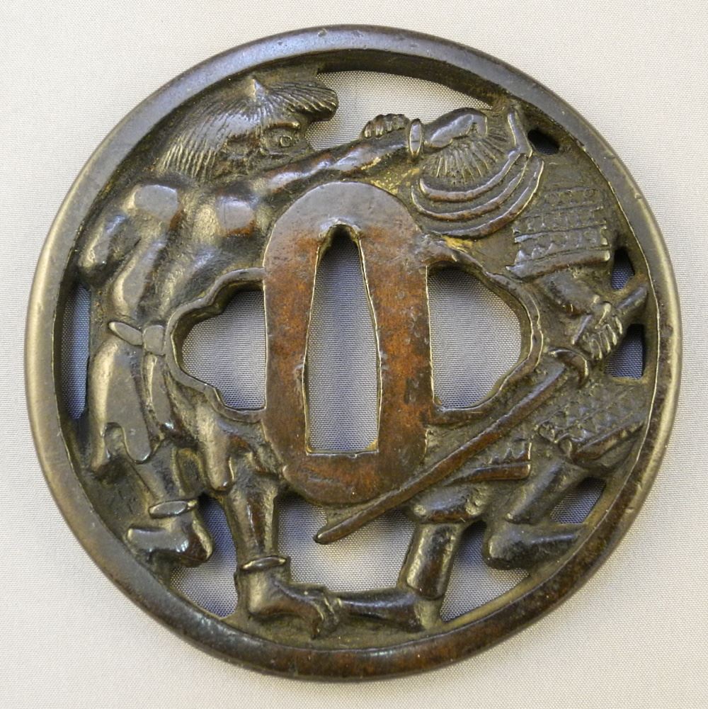 Japanese Copper Alloy Tsuba, 3 1/8" diameter.