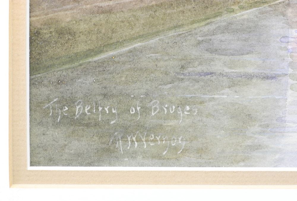 Watercolour Signed R.W.(Warren) Vernon, 11" x 7", "The Belfry of Bruges".