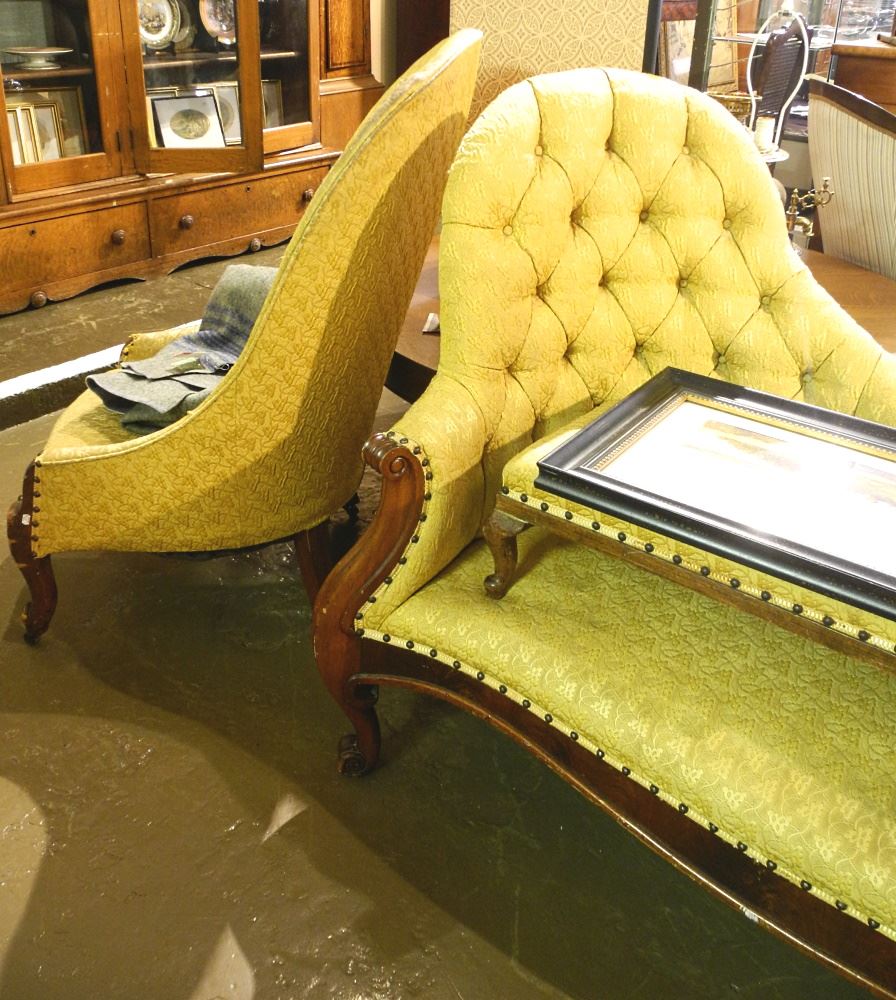 LOT 178 Victorian Seating Group: Settee/ Sloped Chair/ Fender Bench. Estimate: $150 - $300 Sold For: $160 Auction Date: Tuesday, April 12 2022 at 6:00 PM
