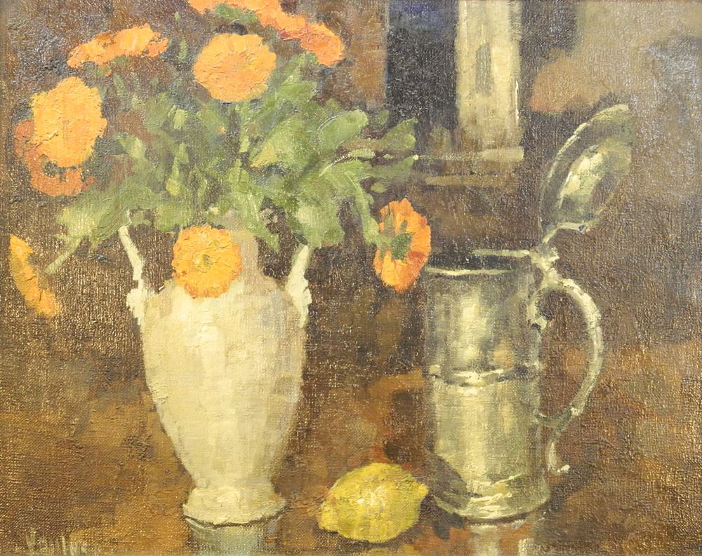 Oil on Canvas Signed Vantore, 19 3/4" x 25", "Still Life with Pewter Stein" with Catalog