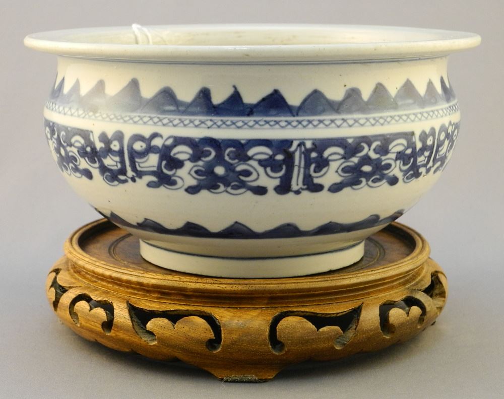 LOT 29 Chinese Blue & White Porcelain Censer (7 3/4"D) & a Stand. Estimate: $150 - $300 Sold For: $130 Auction Date: Tuesday, April 12 2022 at 6:00 PM