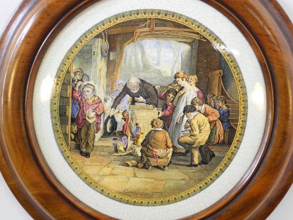 LOT 2 Prattware Wall Plaque Depicting a Schoolhouse, 11 1/4" Diameter. Estimate: $60 - $120 Sold For: $90 Auction Date: Tuesday, April 12 2022 at 6:00 PM