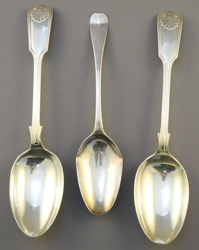 LOT 96 2 Hallmarked Sterling Silver Serving Spoons & a Georgian Spoon (as is), TW:273 Grams. Estimate: $150 - $170 Sold For: $180 Auction Date: Tuesday, April 12 2022 at 6:00 PM