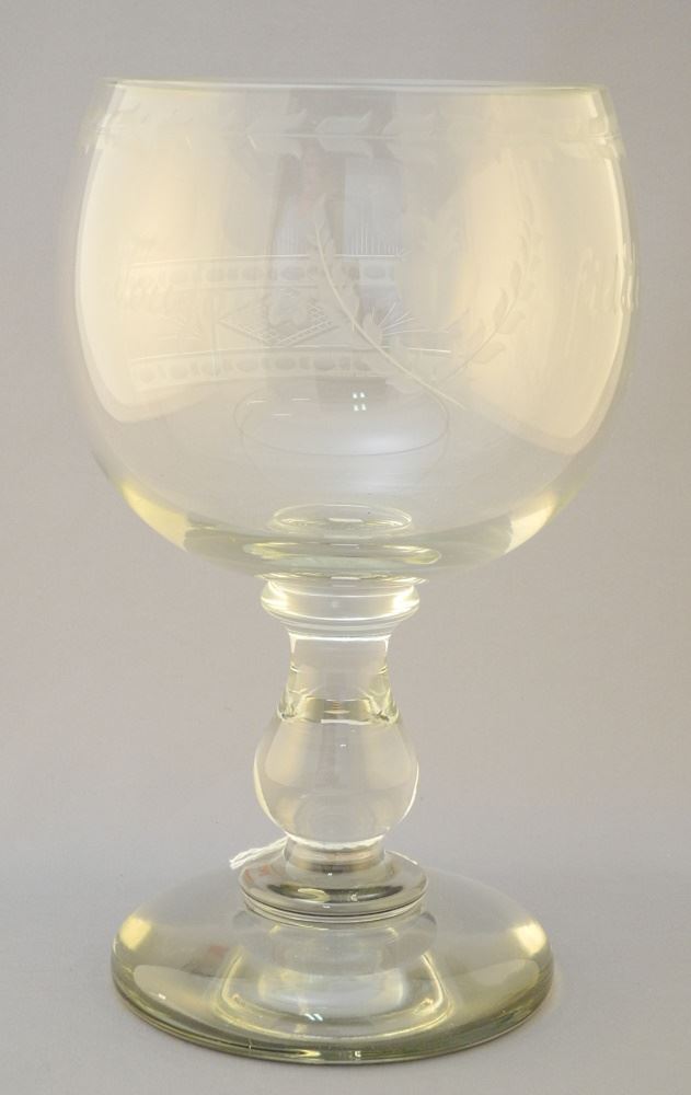 Etched Crystal Goblet Engraved "Toujours Fidele", 10" high.