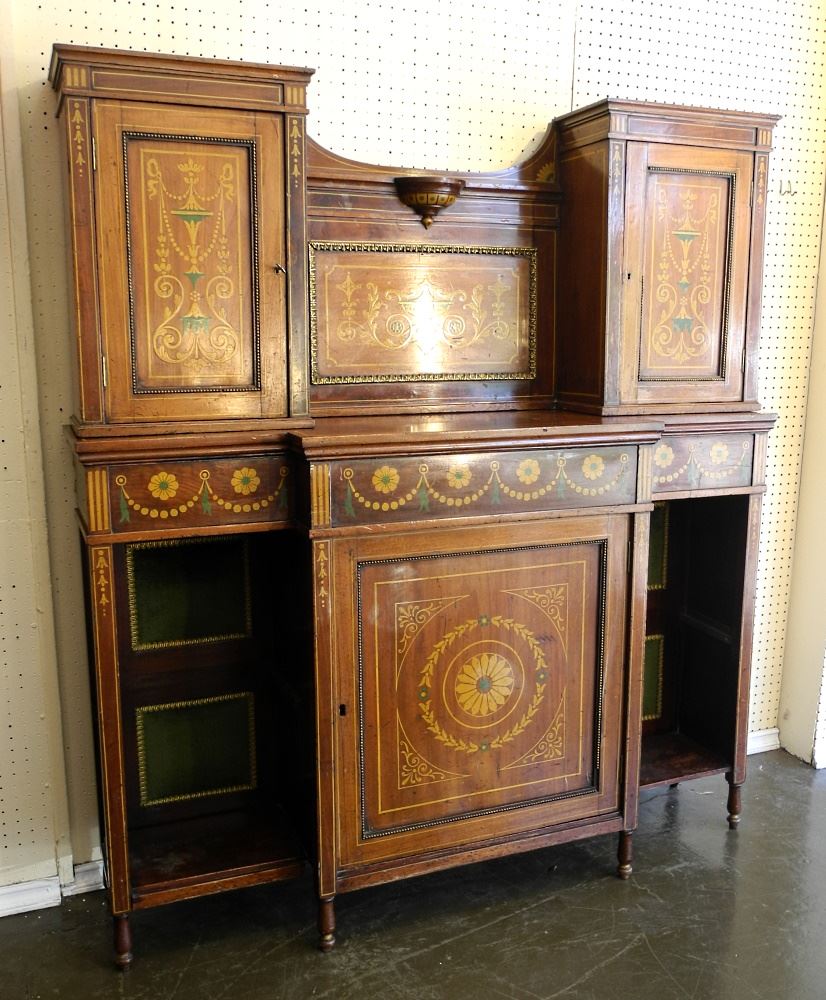 Mahogany Cabinet with Adam-Style Painted Decoration, 2 Sections, 63 1/2" x 57" x 14 1/2".