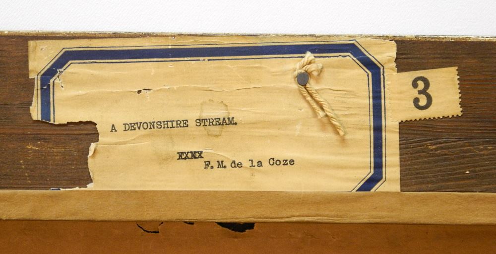Watercolour signed F.M. dela Coze, 13 1/2" x 17 5/8", "A Devonshire Stream".