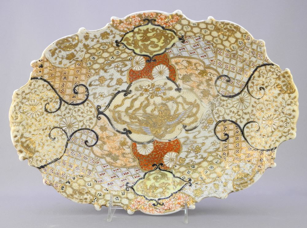 LOT 151 Richly Gilt & Textured Japanese Porcelain Dish, 14" Wide. Estimate: $60 - $100 Sold For: $60 Auction Date: Tuesday, October 25 2022 at 6:00 PM
