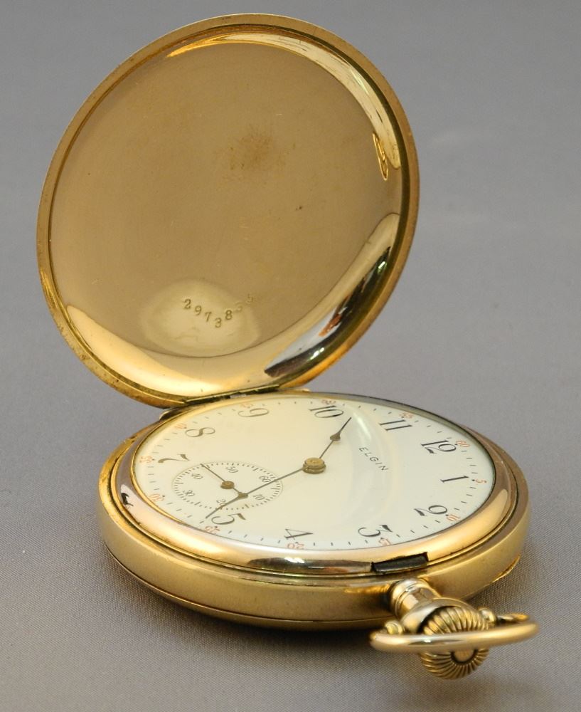 Elgin Gold Plated Pocket Watch, Recently Serviced, 1 7/8" Diameter.