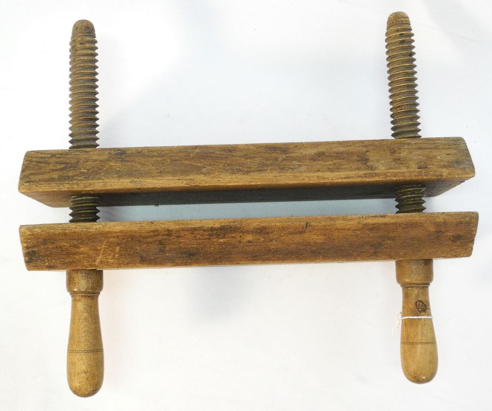 LOT 127 Antique Finishing Book Press, 16 1/2" x 19" x 7". Estimate: $100 - $150 Sold For: $100 Auction Date: Tuesday, October 25 2022 at 6:00 PM