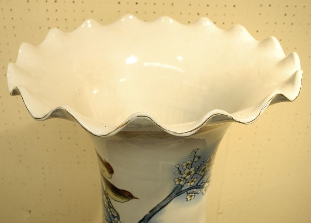 LOT 147 Chinese Porcelain Temple Vase, Birds & Prunus Bough, 62 1/2" High. Estimate: $200 - $300 Sold For: $375 Auction Date: Tuesday, October 25 2022 at 6:00 PM