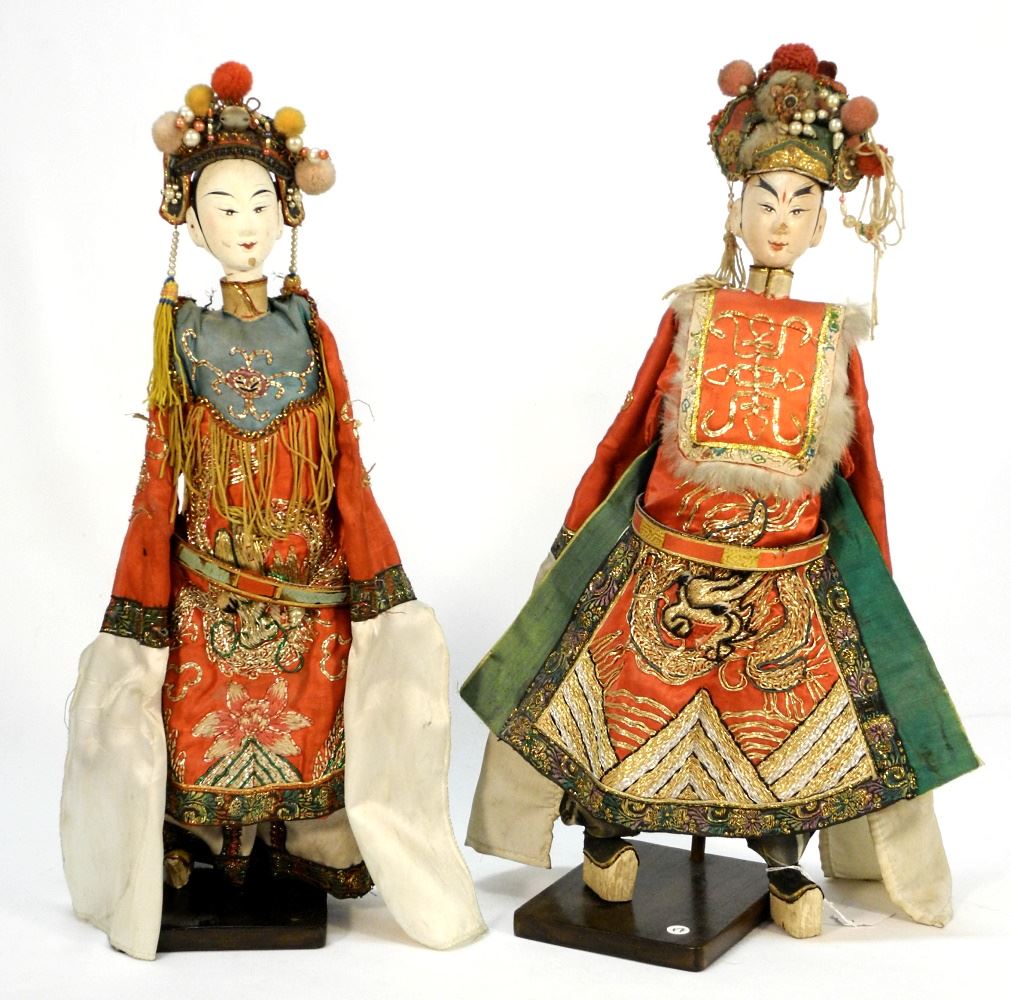 Pair of Chinese Opera Dolls, Good Condition, Retaining Head Pieces, 21" High.